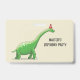 Walter den Dinosaurier auf einem Abzeichen zum Geburtstag.
