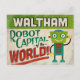 Ein lustiges Design von Waltham Massachusetts Vintage-Reisen mit einem freundlichen Roboter mit lustigem Retro-Stil, der sagt: "Waltham, Roboter-Hauptstadt der Welt!"