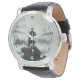 Uhr, Vintage Männeruhr mit schwarzem Lederarmband