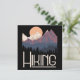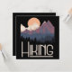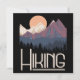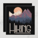 Wandergebirgszubehör für Wanderfreunde. Von Bäumen dekoriert, Berge unter der Sonne mit dem Text "Wandern". Ideal für Lieben, die sich in den Wandergebirgen ihrer Liebe und Begeisterung ausdrücken.