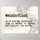Inspiration für Reisende mit Zitat und Wörterbuchdefinition - "Wanderlust - Ein starker Wunsch oder Drang, die Welt zu erkunden oder zu wandern." Set auf einer Vintagen Stilkarte der Welt, die dem Design ein natürliches bohisches Gefühl gibt. Will du, deine Taschen zu packen und auf ein wunderbares neues Abenteuer zu verzichten!