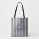 Die perfekte Tasche für einen Wochenendaufenthalt, um zum Bauer-Markt zu fahren oder einfach nur für den Alltag. "In Wanderlust vertrauen wir" Text mit handgezeichneter Bergkette auf grauem und weißem Streifen Hintergrund.