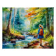 Das ist ein Aquarellbild eines Mädchens, das neben einem Bach in einem Wald wandert. Es hat wunderschöne Farben und würde sehr gut auf einem Schreibtisch oder an einem beliebigen Ort aussehen. Wenn ich mich nur ansehe, fühle ich mich besser wohl.