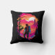Ein cooles Retro-Design mit bunten Berglandschaften und einem Wanderer im Sonnenuntergang.