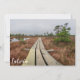 Panoramasicht auf das Bug mit Holzweg, kleine Teiche und Kiefernbäume. Wanderweg mit Holzweg, der über den Sumpf führt...