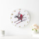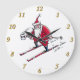Die Wanduhren des Weihnachtsmannes tragen zum Weihnachtsspass bei. Santa Skiing ist die Original Cartoon-Kunst von Steamy Raimon.