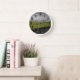 Wanduhr mit weißem Rahmen, in dem Bauernland in teilweiser Farbe dargestellt wird