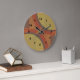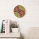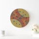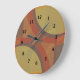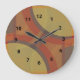 Die Wanduhren mit schwarzen Zahlen lösen. Dissolution ist ein abstraktes Design, das von Vexenwraith geschaffen wurde und aus roten, orangefarbenen, oliven und grauen Kreisen und Rechtecken besteht.