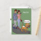 Eine Karte mit einem lustigen Cartoon über einen Hund und seinen Besitzer, die beim Spaziergang ihre Telefone anschauen. Hintergrund, Bild und Text können angepasst werden. Original Cartoon von DBcartoons.