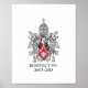 Papst Benedikt XVI. hat mit seiner Wahl im Frühjahr 2005 Geschichte geschrieben und mit der Ankündigung seines Verzichts auf den Thron St. Peter im Februar 2013 einen ebenso denkwürdigen Ausstieg vollzogen. Als ein Mann großen Glaubens und tiefer Kultur mit dem Herzen eines Lehrers sah er in seinen acht Jahren im Vatikan die Samen der Botschaft Christi auf felsigem und fruchtbarem Boden gleichermaßen werfen. Erinnern Sie sich an diesen großen Mann und seinen bescheidenen Ausstieg, indem er sein Wappen zeigt, die Embleme seiner bayerischen Zuhause in der Erzdiözese München zeigt und die Muschel von Taufe und Pilgerfahrt auf der Jakobsmuschel zeigt. Originale Kunst von Matthew Alderman, http://www.matthewalderman.com
