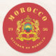 Das marokkanische Staatswappen ist zwischen zwei Textabschnitten zentriert. Im oberen Teil befindet sich der Ländername, wie er in der ganzen Welt bekannt ist, und der andere Teil des Textes ist der offizielle Name des Landes. Das Unabhängigkeitsjahr wird in der Mitte des Designs gezeigt, und unter dem Emblem, ist eine kleine nationale Flagge.