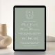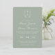 Sage Green Monogram Wappen Wedding Invitation: Vintag inspiriert Line Art Monogramm Wappen mit eleganter Weise grün Typografie. Ein chinoiserie Blumenmuster auf der Rückseite für zeitlose Eleganz.