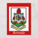 Das Wappen der Bermuda zeigt einen roten Löwen, der einen Schild trägt, auf dem ein verwüstetes Schiff steht. Der rote Löwe ist ein Symbol Englands und spricht von Bermudas Beziehung zu diesem Land. Das zerstörte Schiff ist das Sea Venture, das Flaggschiff der Virginia Company. Das Schiff wurde 1609 von Admiral Sir George Somers absichtlich an die Riffe von Bermuda weitergetrieben, um zu verhindern, dass es in einem Sturm vergossen wird. Alle an Bord überlebten, was zur Besiedlung der Insel führte. Das lateinische Motto unter dem Wappen, Quo Fata Ferunt, bedeutet "Wohin das Schicksal [uns]". Im 20. Jahrhundert wurde das Wappen - ohne das Motto zu tragen - dem Roten Zeichen hinzugefügt, um die unterscheidende koloniale Fahne zu schaffen (die Nationalflagge ist die Union Jack, die in ihrer oberen, links Ecke erscheint) und auf der Fahne des Gouverneurs. Das Wappen wird auf dem Titelblatt der 1624 herausgegebenen "The General Historie of Virginia", New-England, und der Sommerinseln (die Somers Isles ist ein weiterer Name für Bermuda, der an Admiral Somers erinnert) von Captain John Smith gezeigt. Das alte Abzeichen der Bermuda vor 1910. Das Abzeichen basierte auf einer Skizze aus dem Jahr 1869 aus dem Siegel von 1817, die einen nassen Dock der Zeit darstellte, der mit einigen Boote im Hintergrund gezeigt wurde. Es wird angenommen, dass die Szene darauf hindeutet, dass die Inseln als Zwischenstopp für die Segelschiffe[1] dienen, als das Abzeichen von der Admiralität genehmigt wurde.