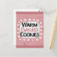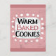"Warm gebackene Kekse" ist ein lustiges Textdesign mit weißer Akzent-Form, umgeben von weißen, weißlichen, weißgestrichenen Punkten.