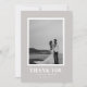 Eine moderne Hochzeitskarte mit einem warmen grauen Hintergrund und fett weißer Typografie. Dieses Design ist sauber und minimalistisch und hebt Ihr Foto hervor, behalte aber gleichzeitig das Gesamtbild elegant und zeitlos.