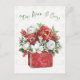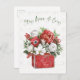 Rustikale Saison V| Schöne Ferienanlage und rot-weiße Blume sind in einem roten Behälter gebündelt. Der Satz "Bleibe Warm & Cozy" und ein Blumenhintergrund runden das Kunstwerk ab. | 57373HR