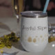 This neutral wine tumbler features a soft wrap of pinecones, beige snowflakes, and light gold sparkles along the base, paired with the serif phrase “Joyful Sips.” Its warm beige, gold and white palette suit seasonal gatherings and adds a refined winter accent to everyday moments.