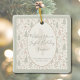 Send heartfelt holiday cheer with this elegant, nature-inspired ornament featuring soft sage green accents and a delicate arrangement of pinecones, leaves, and berries. The central oval frame showcases your personalized message, making it perfect for families who want to share joy in a timeless, tasteful way.