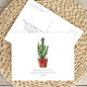 Illustration eines Kakteen, der mit Weihnachtsschmuck, Weihnachtsbeleuchtung und einem Stern geschmückt ist. Der Kaktus ist im Korb mit rotem Bogen. Personalisieren Sie den Namen.
