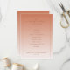 Dieses Hochzeitsprogramm hat einen warmen, pfirsichfarbenen Hintergrundverlauf, der von tiefem Korallenrot zu einem blassen rosa-beigen Ton übergeht. Das Design ist elegant schlicht, mit einer kursiven Schrift für die Willkommensbotschaft und einer klassischen Serifenschrift für die Details der Zeremonie, wodurch eine harmonische Mischung aus Formalität und Intimität entsteht. Anpassbare Platzhalter ermöglichen eine Personalisierung mit Namen und Daten, während das saubere Layout die Lesbarkeit gewährleistet. Perfekt für Paare, die eine anspruchsvolle und dennoch einladende Ästhetik suchen, erfasst dieses Programm die festliche Stimmung ihres besonderen Tages.