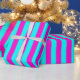 Warme rosa und blaue türkisfarbene Streifen Geschenkpapier