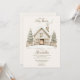 Feiern Sie die Ankunft eines kleinen mit diesem gemütlichen Winter Baby Dusche Design. Eine hübsche, handbemalte Hütte mit glühendem Kamin liegt zwischen schneebedeckten Kiefern und schafft so eine friedliche Waldlandschaft. Die sanften Tauptöne und die minimale nordische Ästhetik bringen Wärme und rustikale Eleganz zu Ihrem saisonalen Fest.