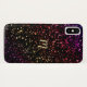 Wärmen Sie dunklen Regenbogen-Glitzer-Monogramm iPhone X Kasten. Ein dunkler funkelnd Hintergrund in den warmen hued Schatten des Goldes, des Bernsteines, des Burgunders, der dunklen violetten und gebrannten Orange. Ein stilvoller schützender Mantel für Ihr neues Lieblingstelefon.