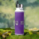 Diese Thermalwasserflasche wird mit dem Pfotendruck eines Huskies gezeigt. Farbe Lila und Weiß Sie können die Farben dieses Elements ändern einfach anpassen. Lizenzierte Printwerbung