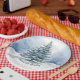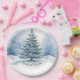 Diese einfachen und stilvollen Teller sind der ideale Ort, um die Gäste dieser Ferienzeit zu empfangen. Das Design hat eine Aquarellfarbe, handgemalt immergrün Baum mit Schnee an den Ästen. Passen Sie den Text an, um Ihren Weihnachtsgrußwünschen gerecht zu werden.