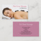 Foto einer schönen jungen Frau, die eine heiße Steinmassage hat. Visitenkarteschablone für Massagetherapiefirma.
