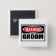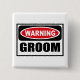 Warnender BRÄUTIGAM Knopf, den Sie bei www.WarningSignShirts.com besonders anfertigen können und ein rotes und schwarzes Warnzeichen und einen BRÄUTIGAM in den mutigen gotischen Schriften, die Welt zu warnen kennzeichnen. Sie können Ihren eigenen Warnzeichen Knopf mit dem Text auch besonders anfertigen, den Sie wollen.