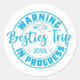 Warning Besties Trip in Progress Blue on White Runder Aufkleber