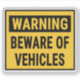 Warning Beware of Vehicles Sign