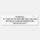 WARNING: IM FALLE DER BEGEISTERUNG WIRD DIESES AUTOAUFKLEBER