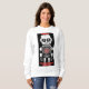 Warning: May Spontaneously Talk About AI. The perfect gift for the AI-obsessed lady in your life. Funny sweatshirt with cute robot design. Women's white sweatshirt, Cotton-Poly blend.