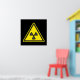 Schwarzes Poster mit gelben und schwarzen Warnschildern für die Strahlung.
