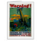 Vintages Poster des Ersten Weltkrieges "Warnung! ~ Überlegen Sie die möglichen Folgen, wenn Sie in Ihrer Arbeit sorglos sind", Förderung der Sicherheit und Konzentration auf die Zuhause Front-Krieg-Produktionslinien, 1917.