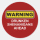 Warnung: Betrunkene Shenanigans vor Runder Aufkleber