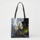 Kriegerin mit weißem Haarengel mit weißen Flügeln. Der Engel ist eine Schlacht, die mit Rüstung, Schwert und Schild bereit ist