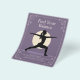A modern yoga instructor flyer design featuring a silhouette of a serene woman in a graceful warrior pose (Virabhadrasana Two) against a pale yellow sun, all on a soft lavender background. Delicate lotus flower illustrations frame the edges.