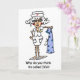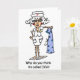 Unglaublich witzig Geschenke für Krankenschwestern oder Visitenkarten für Patienten auf der Intensivstation. Die Krankenschwester Stella, die ein Krankenhauskleid hält, frage: Warum denkst du, es heißt ICU?