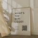 Eine einfache, benutzerdefinierte weiße "What's the WiFi Code?"-Prüfung, um eine Verbindung zu Wifi Business Poster-Vorlage in einem modernen minimalistischen Stil, der leicht aktualisiert werden kann mit Ihrem QR-Code, Netzwerk-Details oder benutzerdefinierten Text.