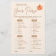Entdecken Sie die perfekte Ergänzung zu jedem Herbstfest mit dem "Was ist in Ihrer Tasche? Fall Pumpkin Baby Shower Game." Dieses fesselnde Spiel, das auf die Saison zugeschnitten ist, verbindet reizvolle Kürbisthemen mit einem festlichen Herbstlebnis und macht es zu einer angenehmen Wahl für jede kleine Kürbisdusche. Die vielseitige, geschlechtsneutrale Aktivität, die sich nahtlos in eine Babydusche oder eine Babydusche passt, zeichnet sich durch ein bezauberndes Design von orangen und blauen Kürbissen aus. Egal ob Sie eine Boho Kürbisdusche planen oder einzigartige Kürbis-Baby-Duschideen suchen, dieses Spiel sorgt für Spaß und Lachen für alle Ihre Gäste!