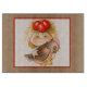 Ein Niedliches Beige-Temperglassbrett mit einem Jungen, der ein Hühnchen mit Eiern im Haar hält