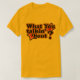 Was Sie Talkin" 'Kampf-T - Shirts. Orange, rot und gelb, mit großem Fragezeichen.