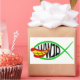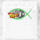Ein Parodie-Design der Ichthys (Jesus Fish). Das Design der Ichthys Fische, mit dem Joker Fish aus einem Comic Buch Cartoon. WWJD in schwarzem Text ist in der Fischerei und frage: "Was würde Joker tun?"