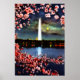 Vintage image of the Washington Memorial at night framed by cherry blossoms at Washington, DC.