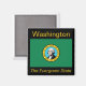 Ein authentisches Premium-Qualitätsbild der Flagge von Washington Set zwischen dem Namen des Staat und dem Spitznamen über einem Fahn-farbigen Hintergrund.