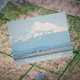 Travel Postcard mit einem landschaftlichen Foto-Ausblick auf den New Dungeness Leuchtturm und den schneebedeckten Mount Baker aus Sequim, Washington Staat. Wählen Sie aus einer matten oder glänzenden Stilkarte.