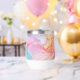 Dieser Thermalwasserklatscher wird in hübschen Pastellfarben mit abstraktem Schwirl gezeigt. Passen Sie dieses Objekt an oder kaufen Sie, wie es ist. Lizenziertes Bild